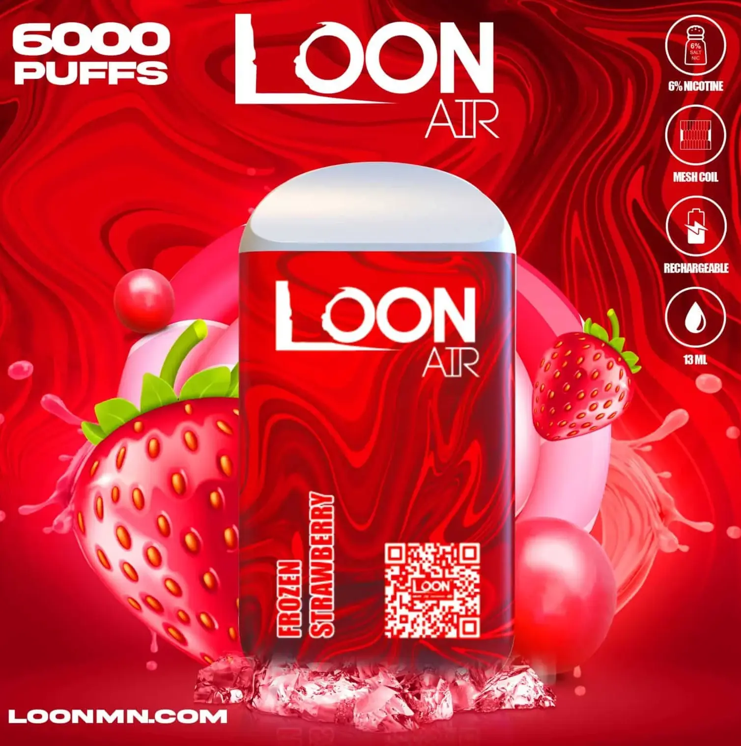Loon Air Disp 6K Strawberry Wtrm 80Ml 10Ct
